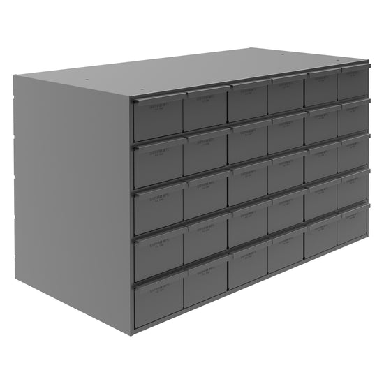30 Drawers, 17-1/4" Deep, Steel Construction, for Small Part Storage, Gray