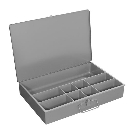 Large, Steel Compartment Box, 9 Compartments, Gray