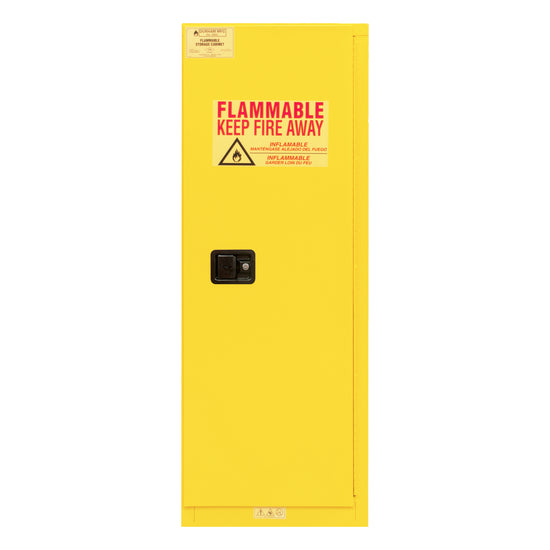 FM Approved, Flammable Storage Cabinet, 22 Gallon, 1 Door, Manual Close, 2 Shelves, Safety Yellow
