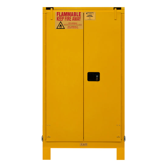 FM Approved, Flammable Storage Cabinet with Legs, 60 Gallon, 2 Doors, Self Close, 2 Shelves, Safety Yellow