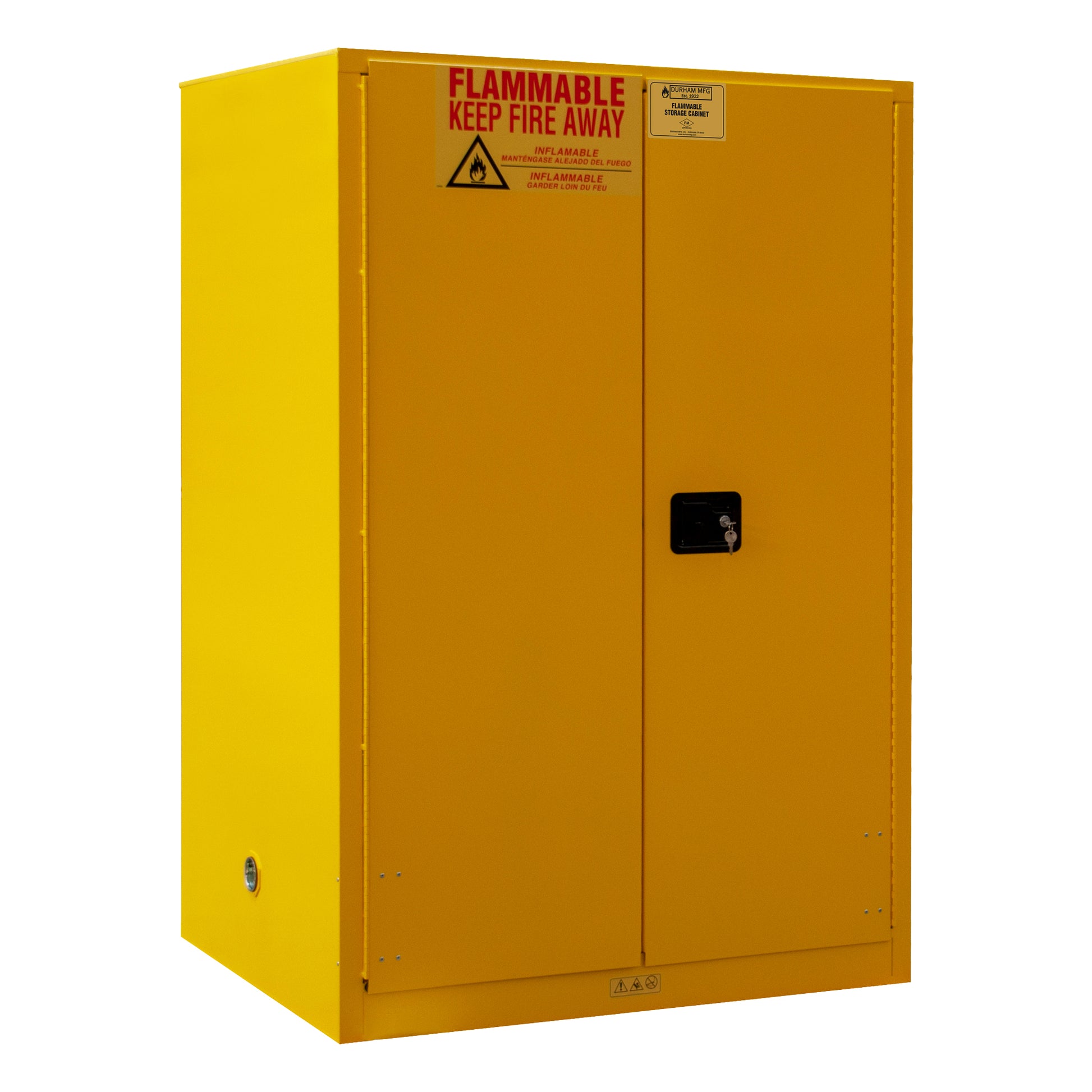 FM Approved, Flammable Storage Cabinet, 90 Gallon, 2 Doors, Manual Close, 2 Shelves, Safety Yellow