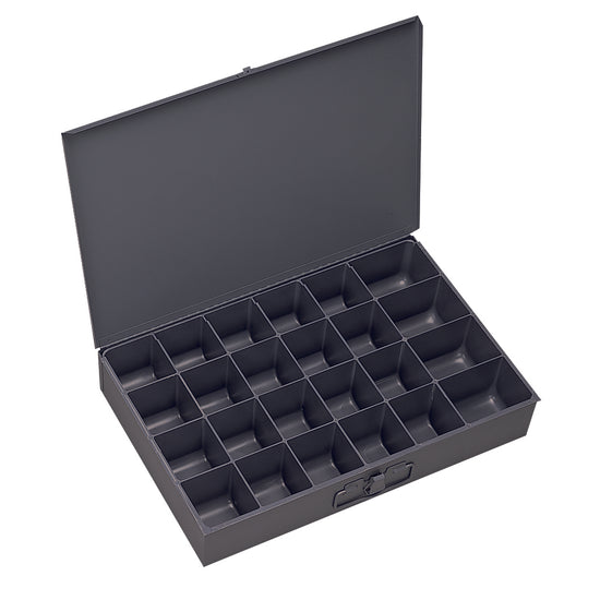 Small, Steel, Compartment Box, 24 Compartments, Individual, Gray