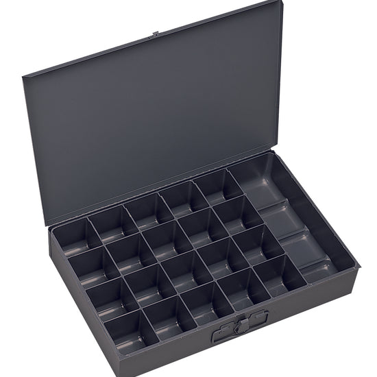 Small, Steel, Compartment Box, 21 Compartments, Individual, Gray