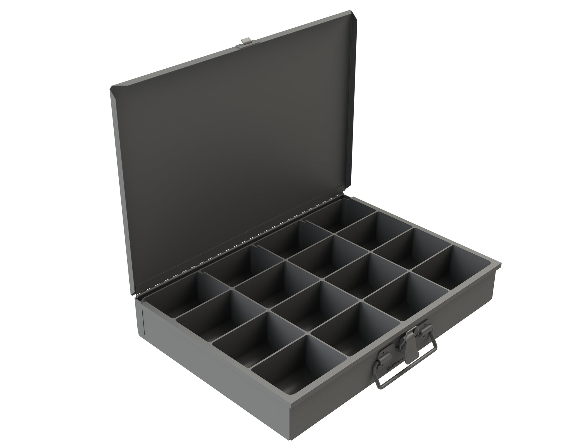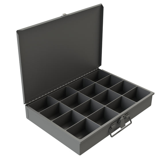 Small, Steel, Compartment Box, 16 Compartments, Individual, Gray