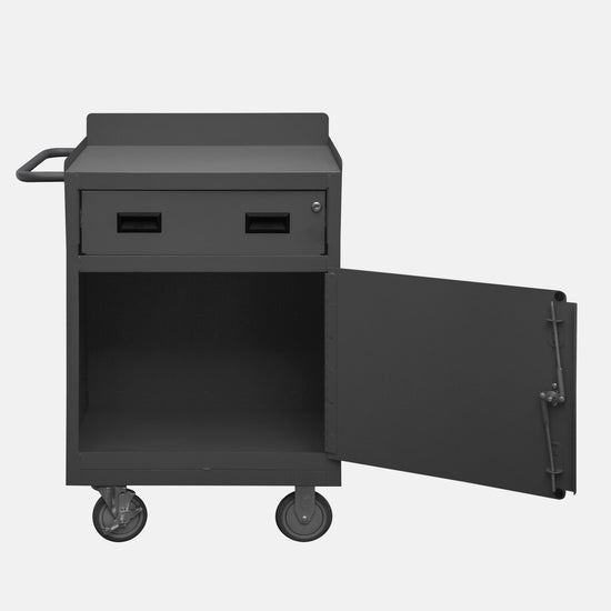 Mobile Bench Cabinet with 5" x 1-1/4" Polyurethane Casters - (2) Rigid, (2) Swivel, 1 Drawer, 1 Storage Compartment with Locking Handle, Tubular Push Handle, Gray