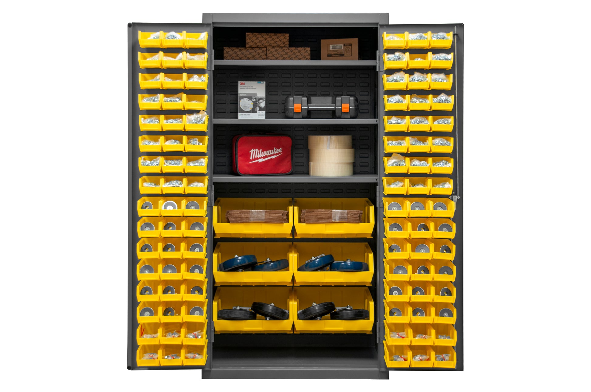 Cabinet, 3 Shelves, 102 Yellow Bins