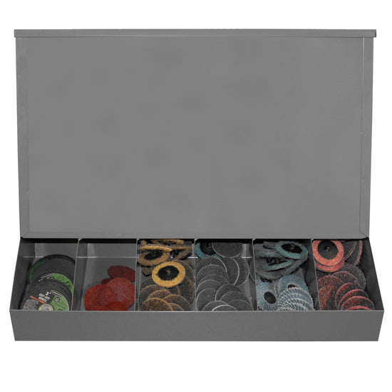 Gravity Feed Dispenser With Lid, Wall Mountable, Gray