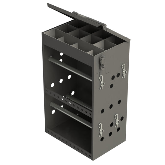Small Wire and Terminal Storage Cabinet, 4 Rods, Insert with 12 Compartments, Gray