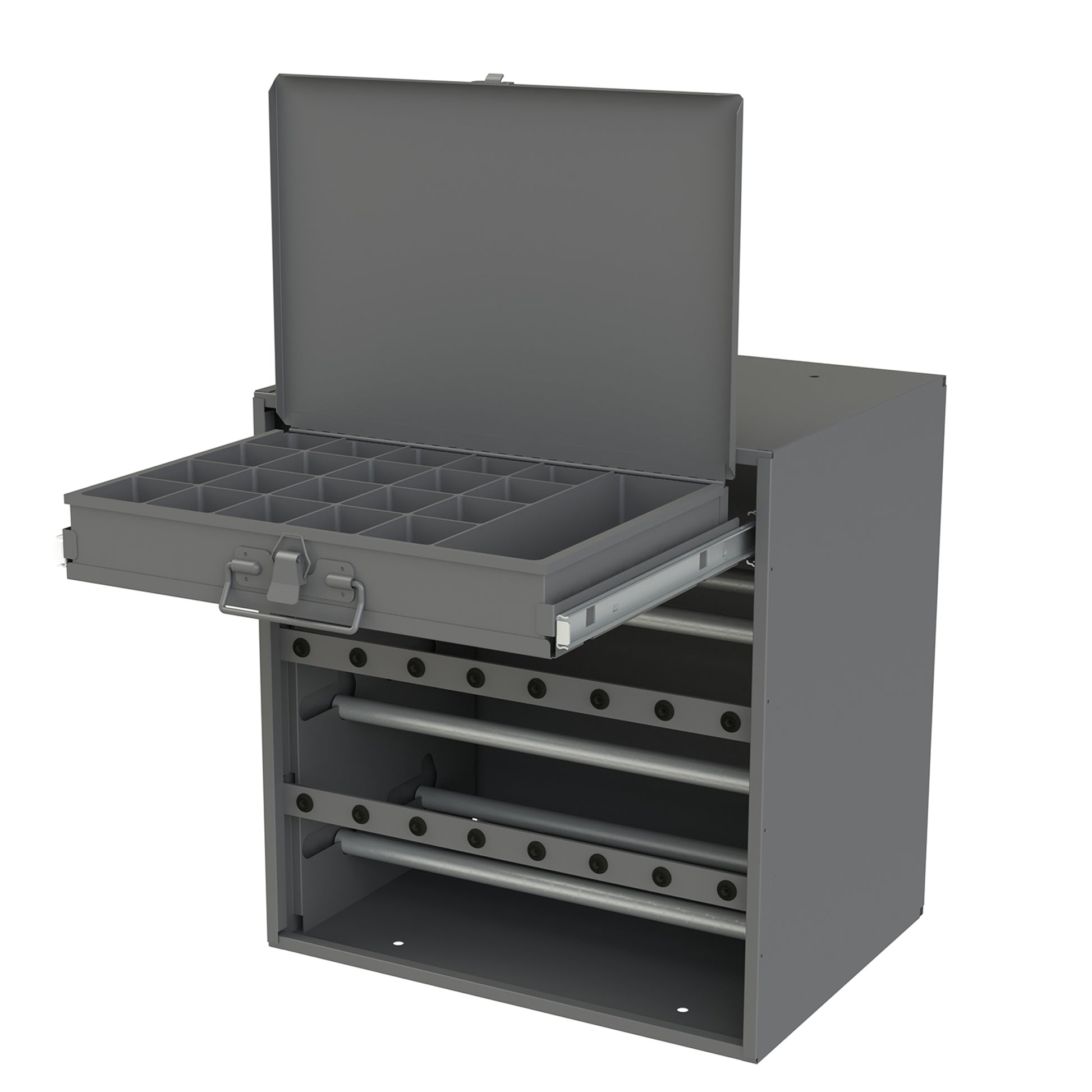 Wire and Terminal Storage Cabinet, 6 rods, 20 Compartments, 16 Rubberized Grommets, Gray
