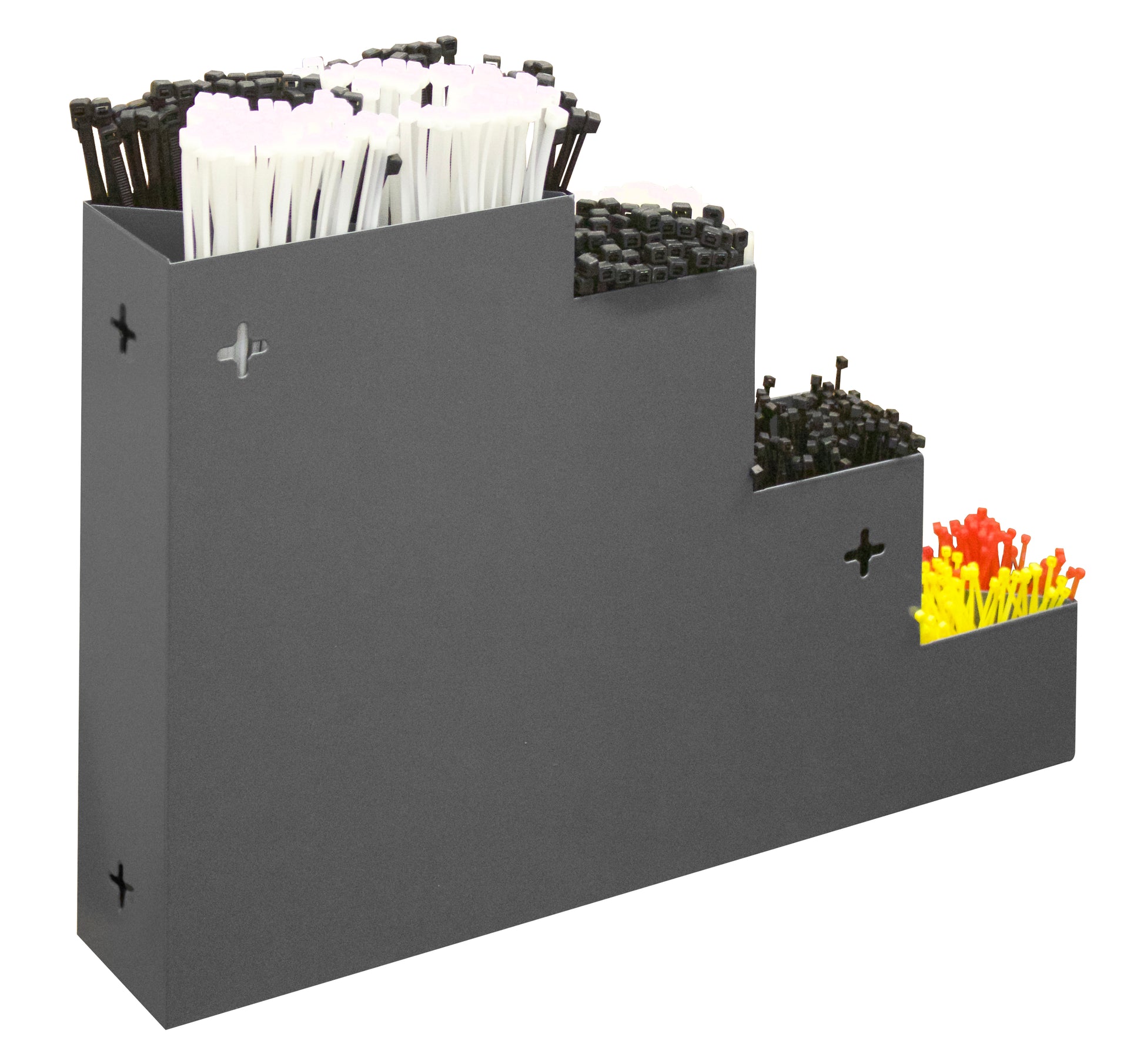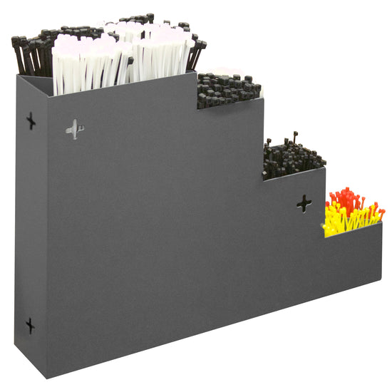 Wall Mountable, Cable Tie Rack, 5 Compartments, 5 Dividers, 4 Different Heights, Steel, Gray