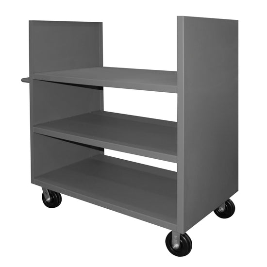 2 Sided Solid Stock Truck with 6" x 2" Phenolic Casters - (2) Rigid, (2) Swivel, 3 Shelves, Lips Down, Tubular Push Handle, Gray