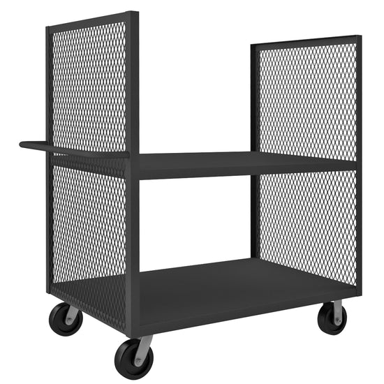 2 Sided Mesh Truck with 6" x 2" Phenolic Casters - (2) Rigid, (2) Swivel, 2 Shelves and Tubular Push Handle, Gray