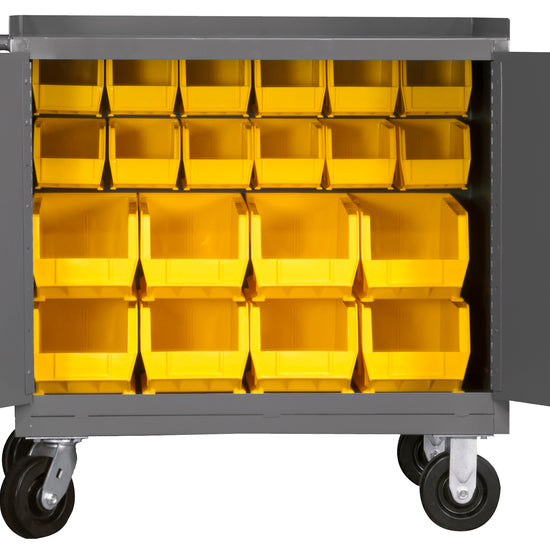 Mobile Bench Cabinet, 20 Yellow Bins
