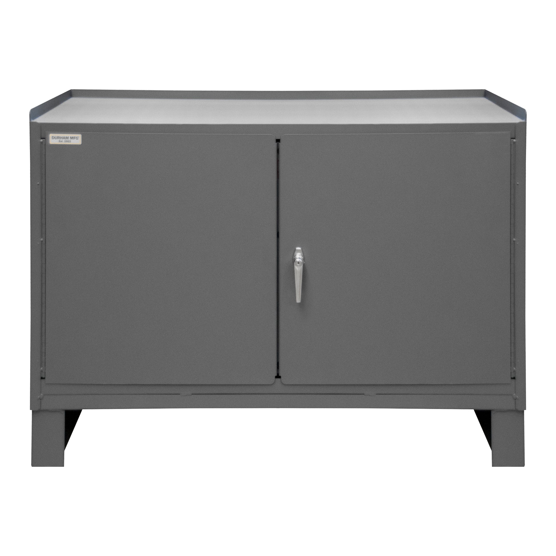 Stationary Workstation, 14 Gauge, 2 Shelves, 2 Doors, Leveling Feet, Gray