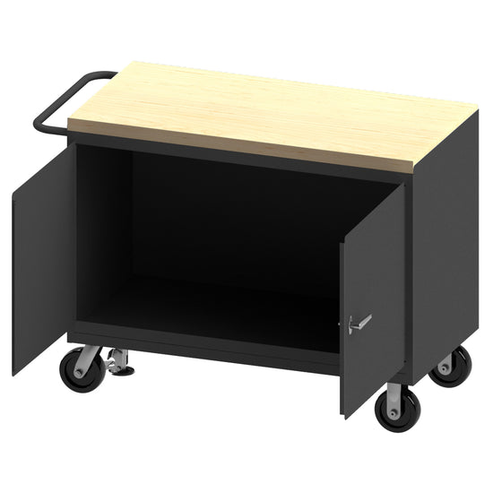 Mobile Bench Cabinet with 6" x 2" Polyurethane Casters - (2) Rigid, (2) Swivel, 2 Doors, Maple Top Surface, Floor Lock, Tubular Push Handle, Gray