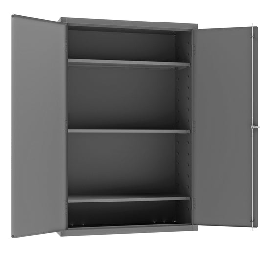 Heavy Duty Cabinet, 14 Gauge, 48 x 24 x 72, 3 Adjustable Shelves, Recessed Doors, Lockable, Chrome Handle with Keys, Gray