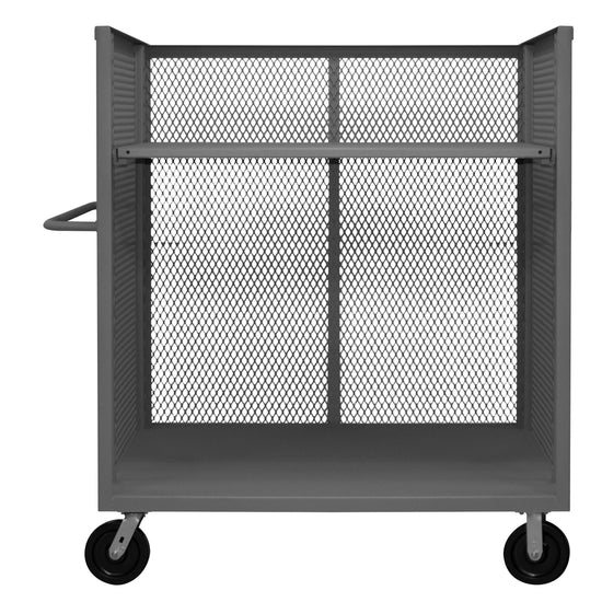 3 Sided Mesh Truck with 6" x 2" Phenolic Casters - (2) Rigid, (2) Swivel, 2 Shelves, 1 Adjustable, Tubular Push Handle, Gray