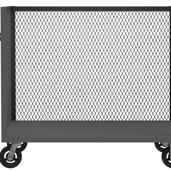 3 Sided Mesh Truck with 6" x 2" Phenolic Casters - (2) Rigid, (2) Swivel, 1 Base Shelf, Tubular Push Handle, Gray