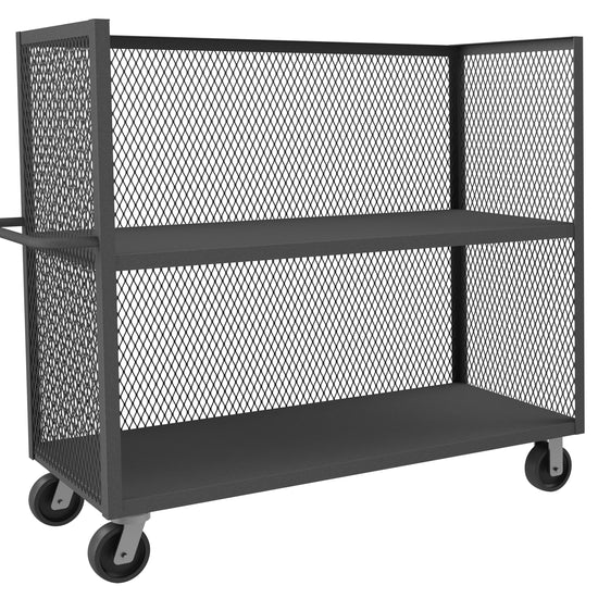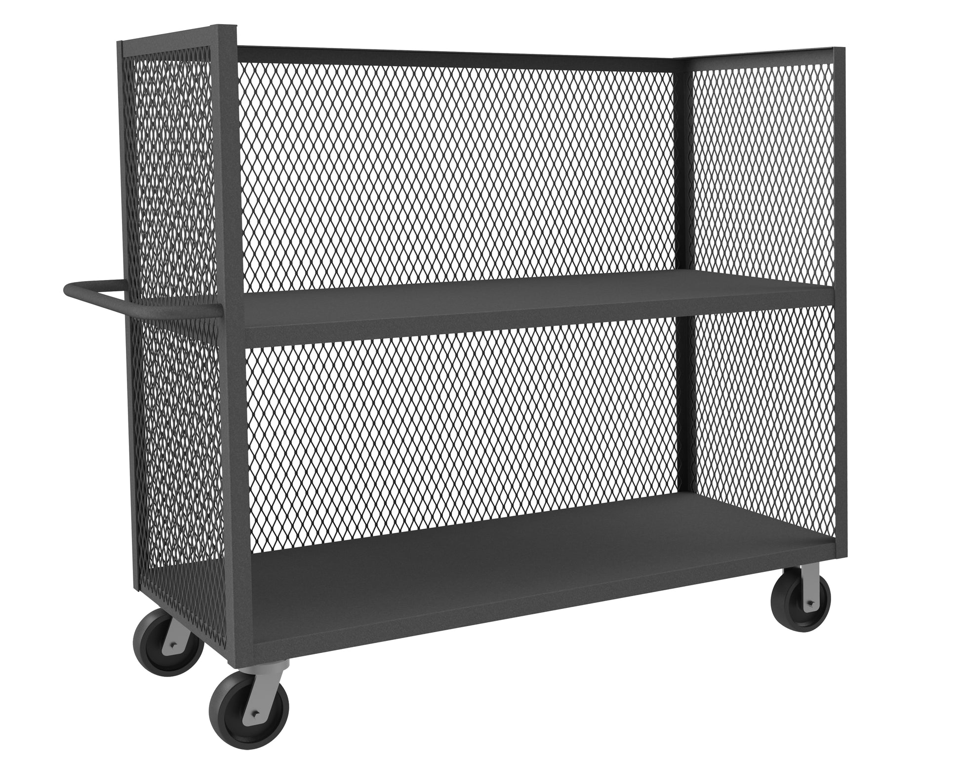3 Sided Mesh Truck with 6" x 2" Phenolic Casters - (2) Rigid, (2) Swivel, 2 Shelves, Tubular Push Handle, Gray