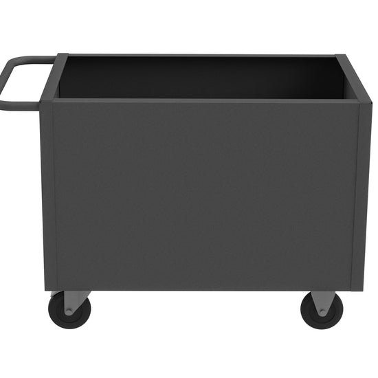 4 Sided Solid Box Truck with 5" x 1-1/4" Polyolefin Casters - (2) Rigid, (2) Swivel with Side Brakes, Tubular Push Handle, Gray