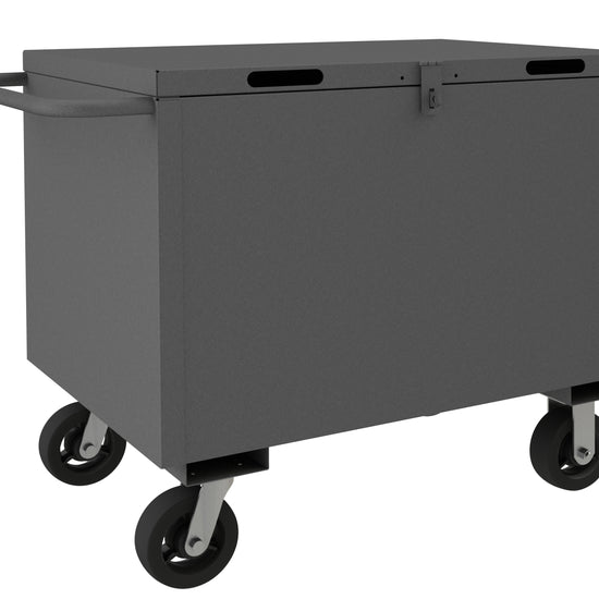 4 Sided Solid Box Truck with 6" x 2" Mold-On-Rubber Casters - (2) Rigid, (2) Swivel, Pad-Lockable, Hinged Cover, Tubular Push Handle, Gray