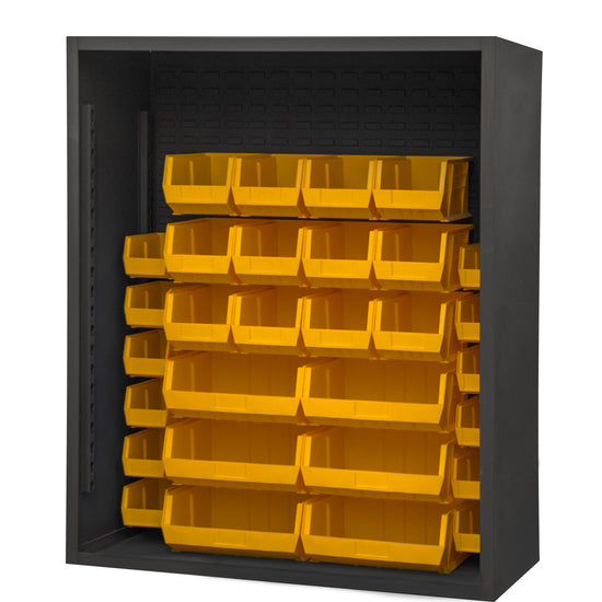 Enclosed Shelving, 12 Gauge, 48 x 24 x 60, 30 Yellow Bins, Gray