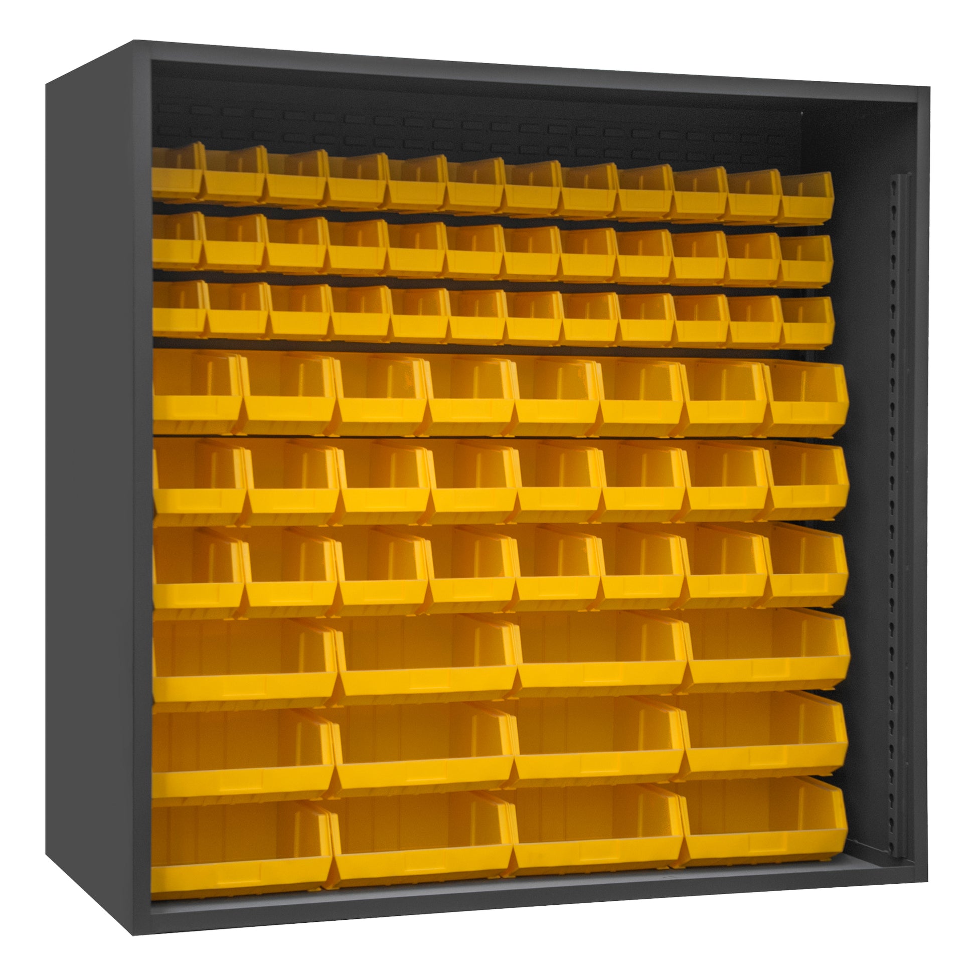 Enclosed Shelving, 12 Gauge, 72 x 24 x 72, 72 Yellow Bins, Gray