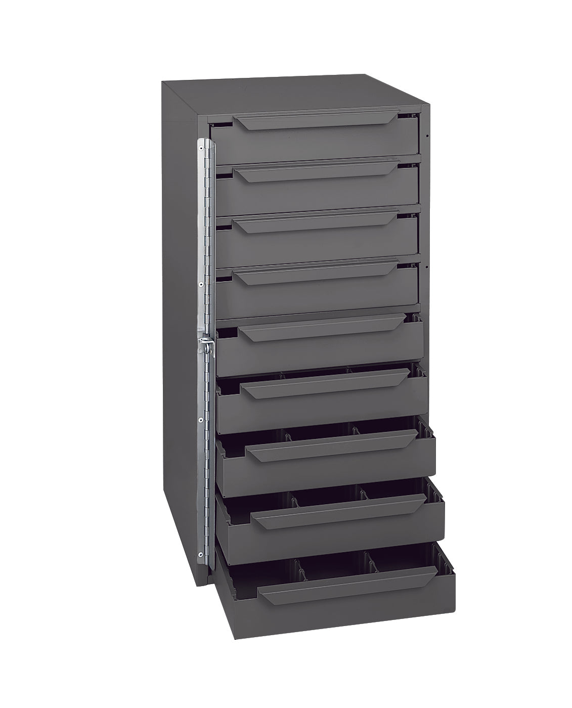 9 Drawer Storage Bin, Steel, Pad-Lockable Hinge, 9 Dividers Per Drawer