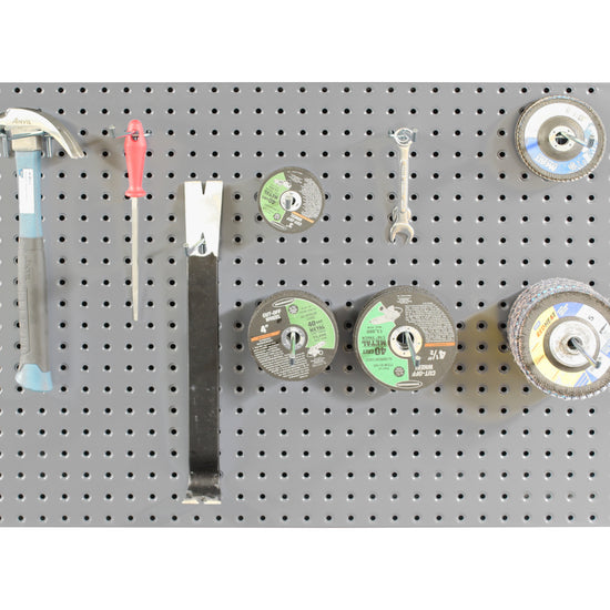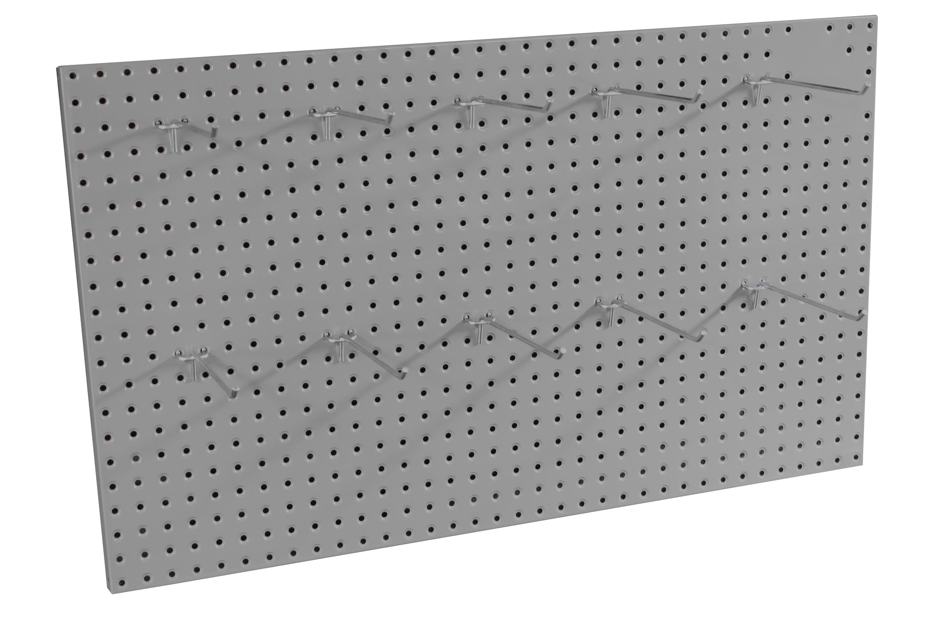 Pegboard Panel, 10 8" Hooks Included, Wall Mountable, Gray