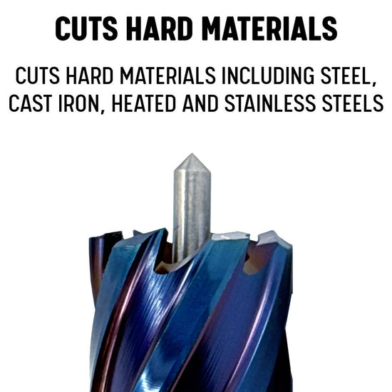 nACo Blue Coated Annular Cutters provides prolonged tool life compared to traditional HSS. Cuts difficult materials, including steel, cast iron, heated and stainless steels. m2 High Speed Steel. Cuts only necessary material for fast, efficient, quality hole making. 3/4" Weldon Shank fits most magnetic drill presses. Also called magnetic drills or mag drills. For use with magnetic drill press only. Do not use with a standard hand drill or drill press. Comes with pilot pin.