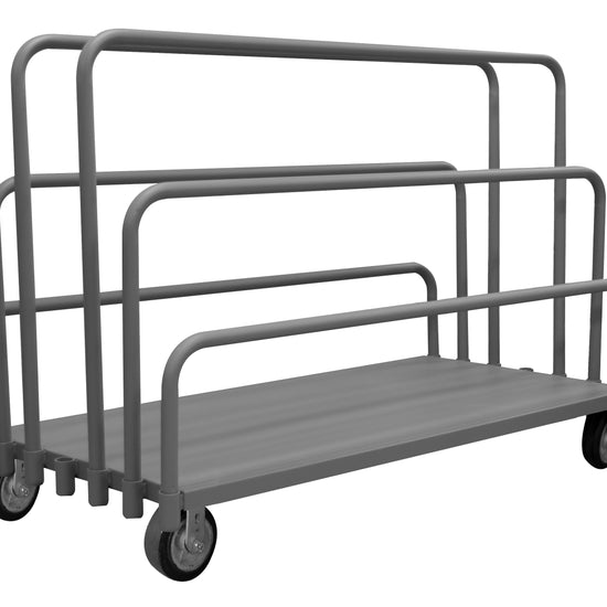 Adjustable Panel Moving Truck with 6" x 2" Mold-On Rubber Casters - (2) Rigid, (2) Swivel, (6) Tubular Removable Dividers, Tubular Push Handle, Gray