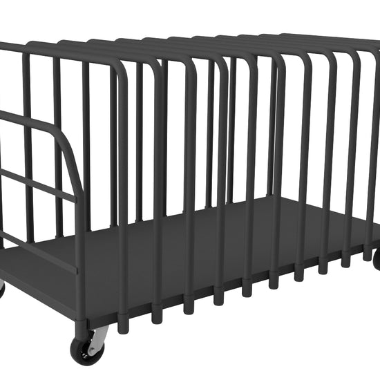 Adjustable Panel Moving Truck with 5" x 2" Mold-On Rubber Casters - (2) Rigid, (2) Swivel, (12) Tubular Removable Dividers, Tubular Push Handle, Gray