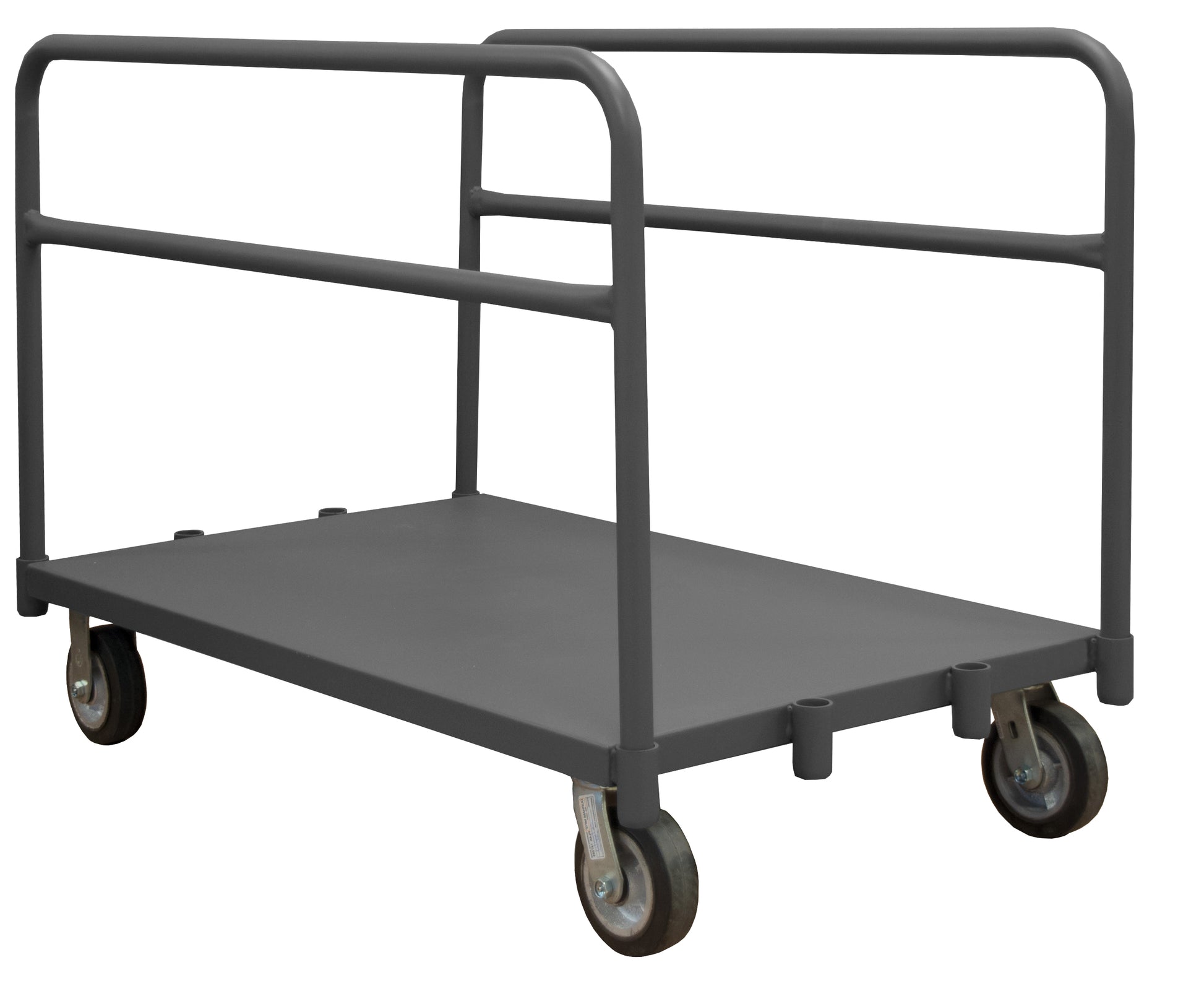 Adjustable Panel Moving Truck with 6" x 2" Mold-On Rubber Casters - (2) Rigid, (2) Swivel, (2) Tubular Removable Dividers, Tubular Push Handle, Gray