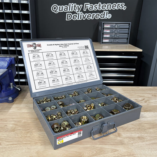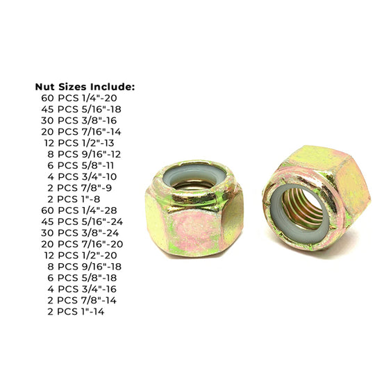 Grade 8 Nylon Hex Nut Coarse & Fine Zinc Yellow Assortment - 379 pcs
