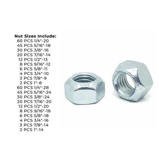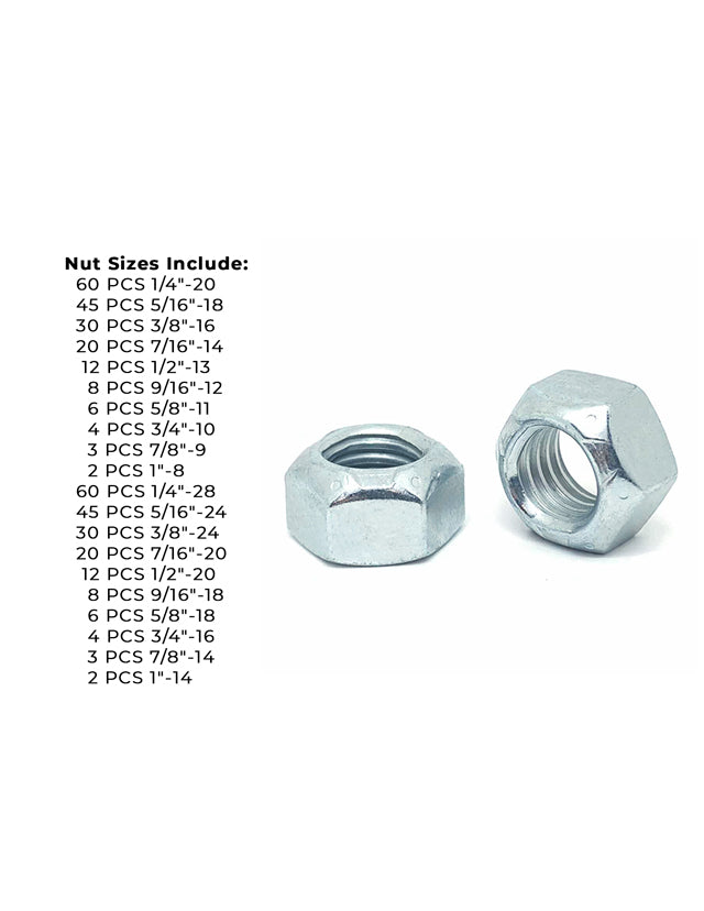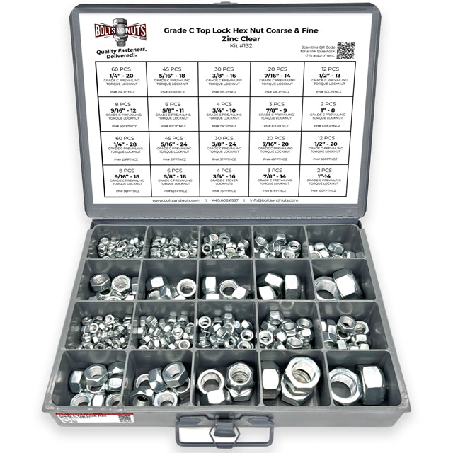 Grade C Top Lock Hex Nut Coarse & Fine Zinc Clear Assortment - 381 pcs