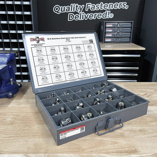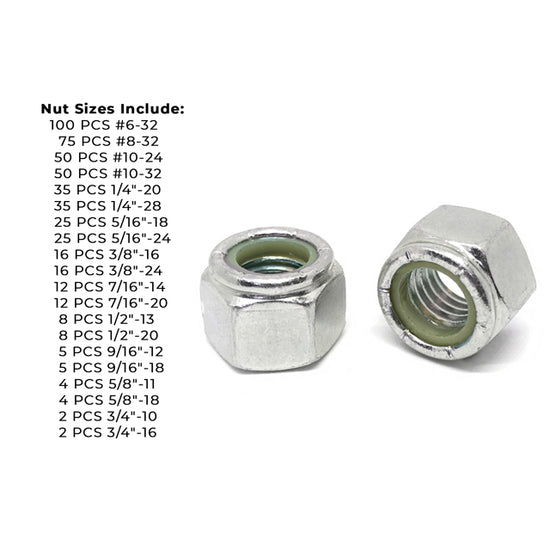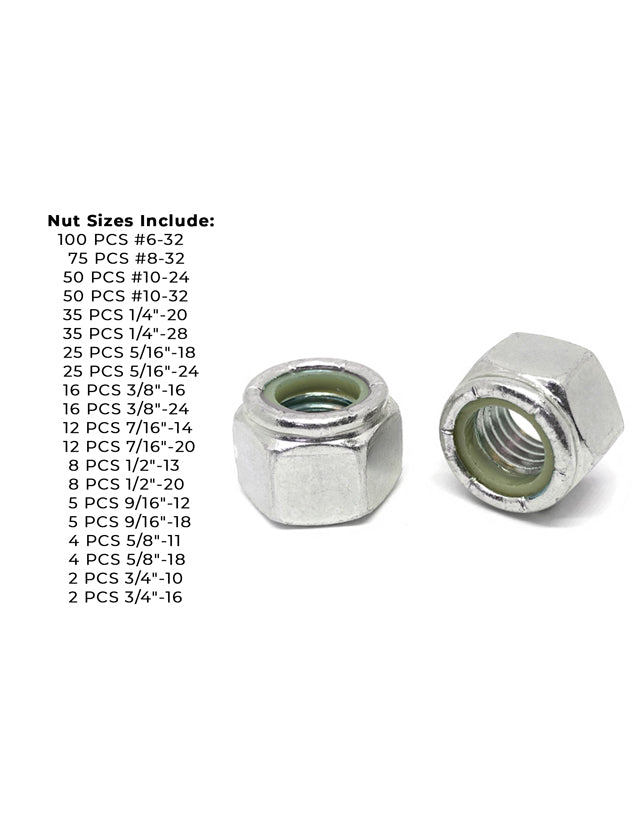 Inch Stainless Steel Nylon Insert Hex Nut Coarse & Fine - 490 pcs