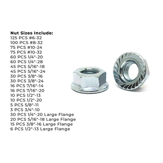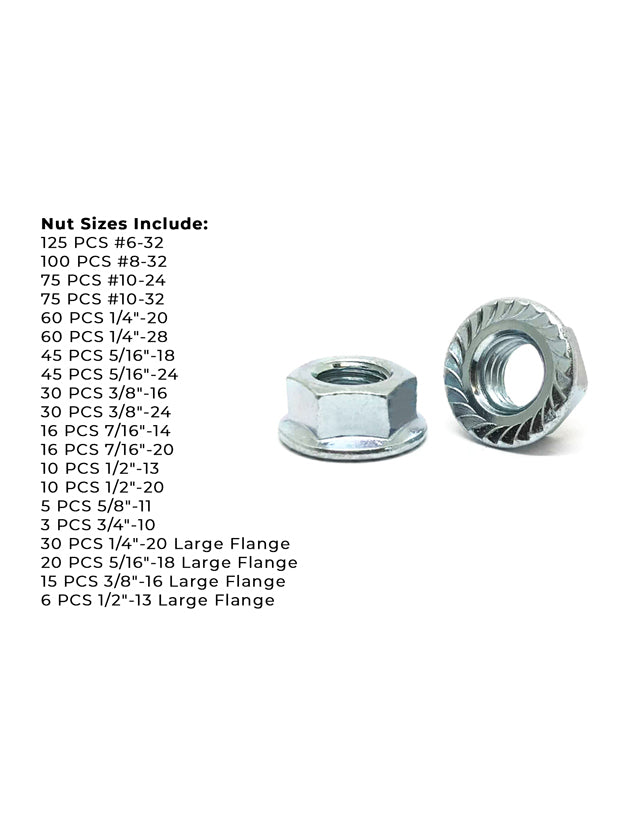 Case Hardened Serrated Hex Flange & Large Flange Lock Nuts Zinc Assortment - 777 pcs