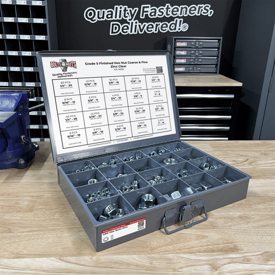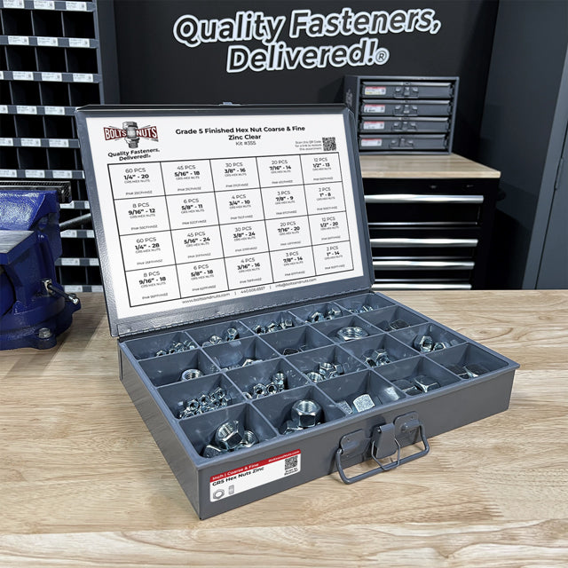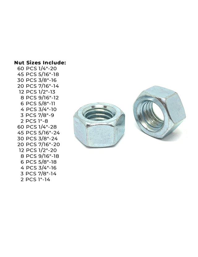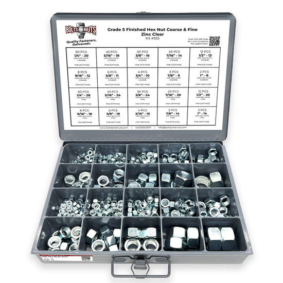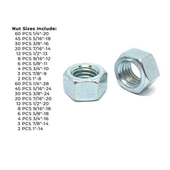 Grade 5 Finished Hex Nut Coarse & Fine Zinc Clear Assortment - 381 pcs