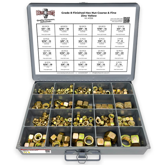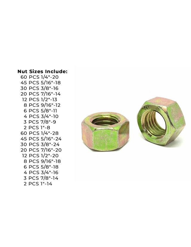 Grade 8 Finished Hex Nut Coarse & Fine Zinc Yellow Assortment - 381 pcs