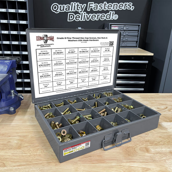 Grade 8 FINE Hex Head Cap Screws, Hex Nuts, Washers, and Lock Washers