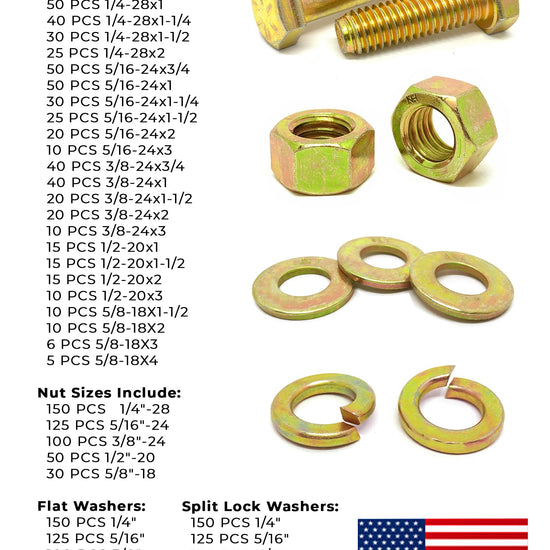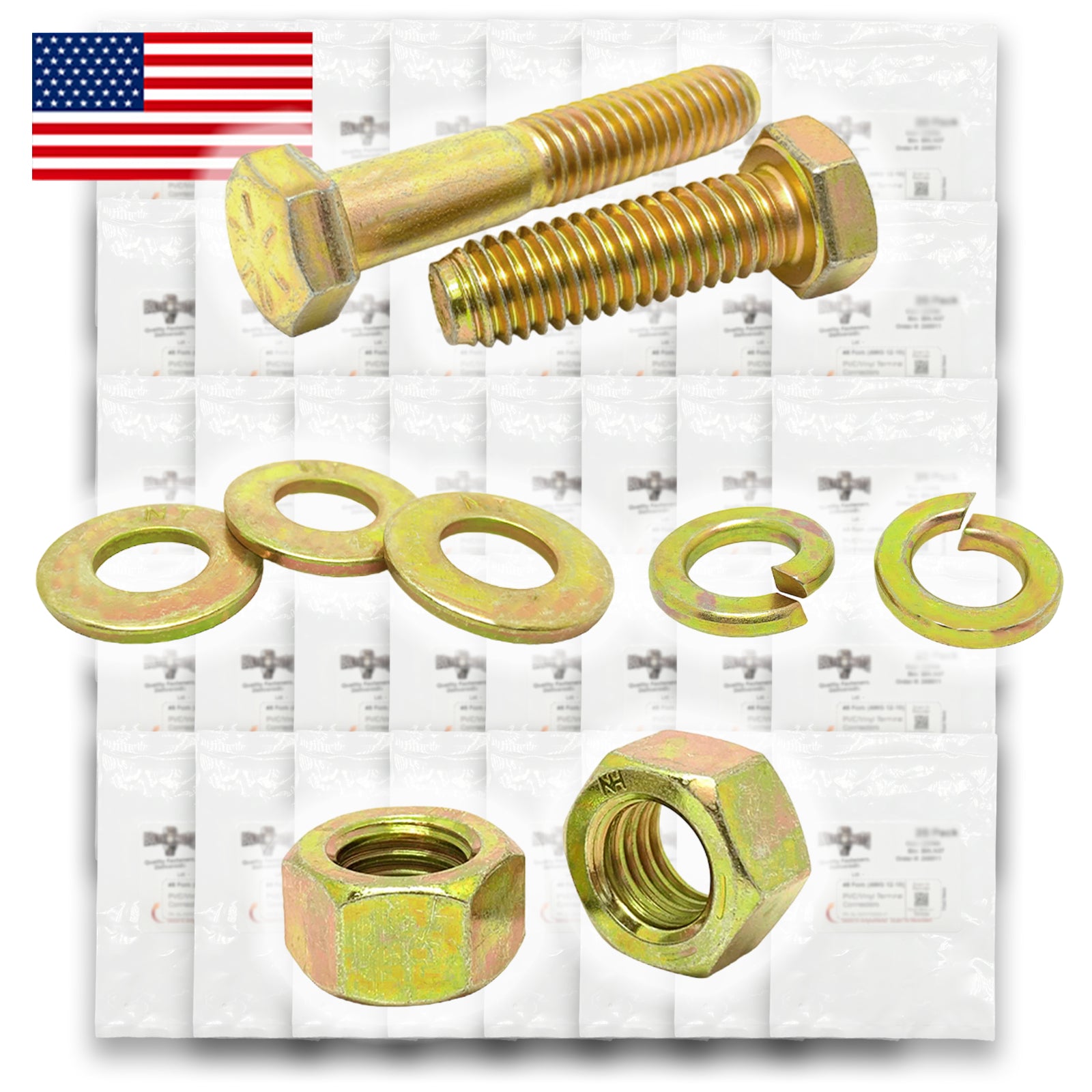 Inch Grade 8 Fine Hex Cap Screws, Hex Nuts, Flat & Lock Washers Zinc Yellow USA Made Hardware - 2011 PCS