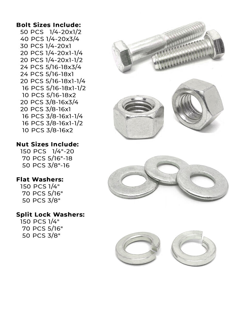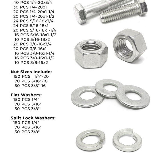 Inch 316 Stainless Steel Hex Cap Screws, Nuts & Washers - 1146 PCS