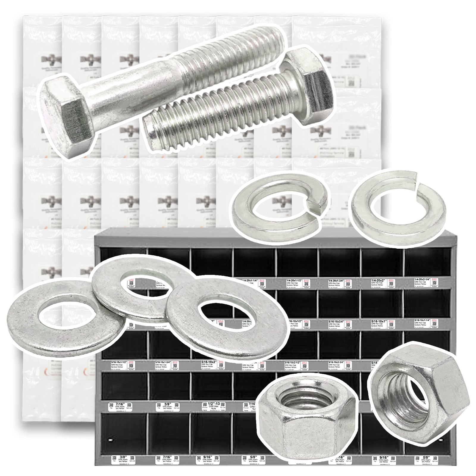 316 Stainless Steel Hex Head Cap Screws, Hex Nuts, Washers, Lock Washers and 40 Hole Bin