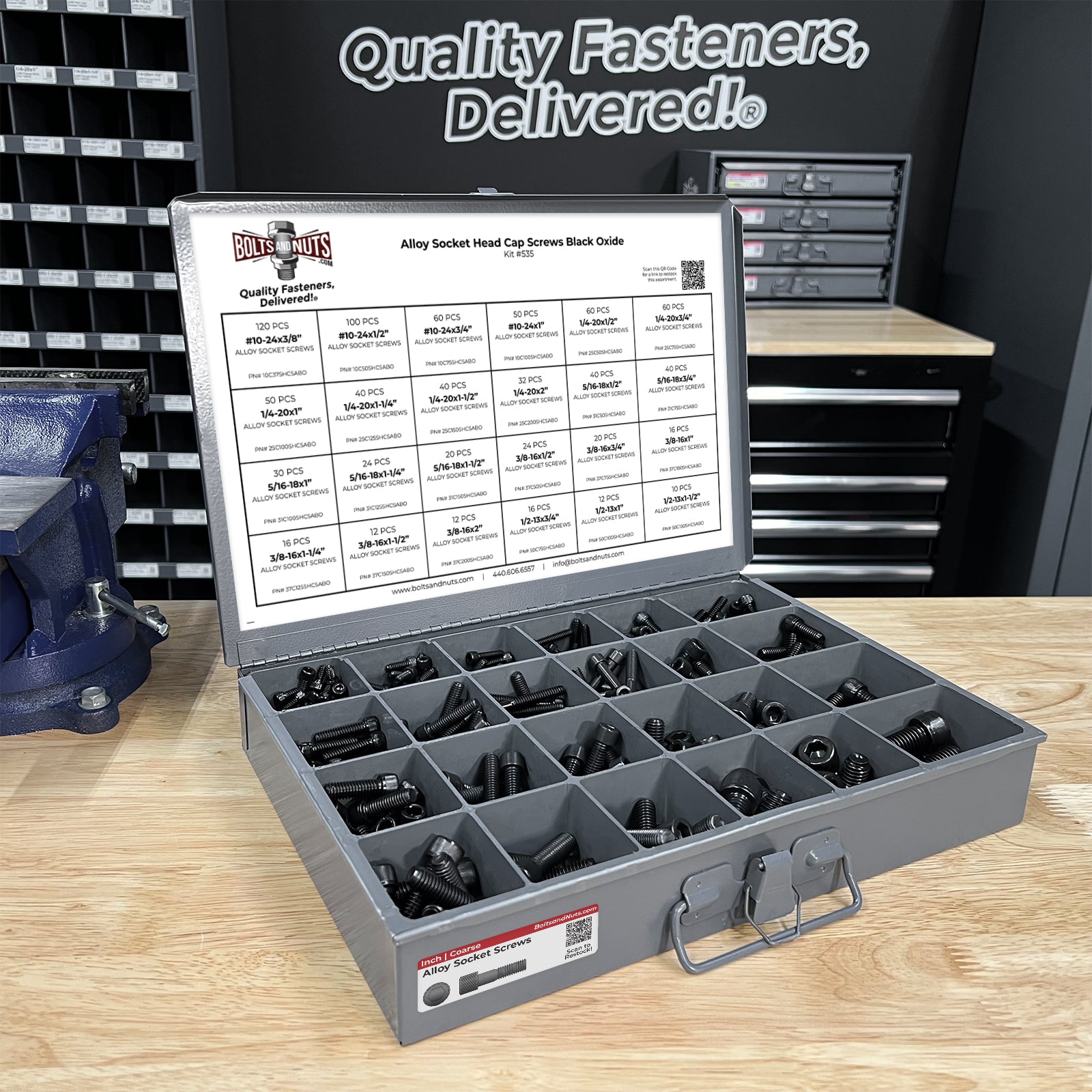 Inch Alloy Allen Socket Head Cap Screws Bolts Black Oxide Assortment - 905 PCS