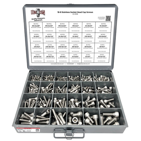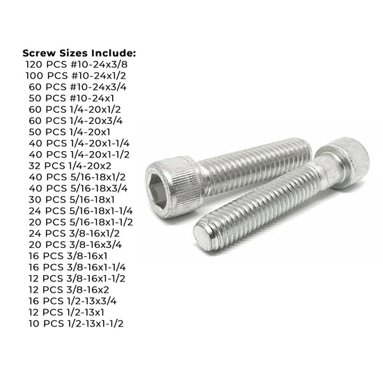 Inch 18-8 Stainless Steel Allen Socket Head Cap Screws Bolts Assortment - 905 PCS