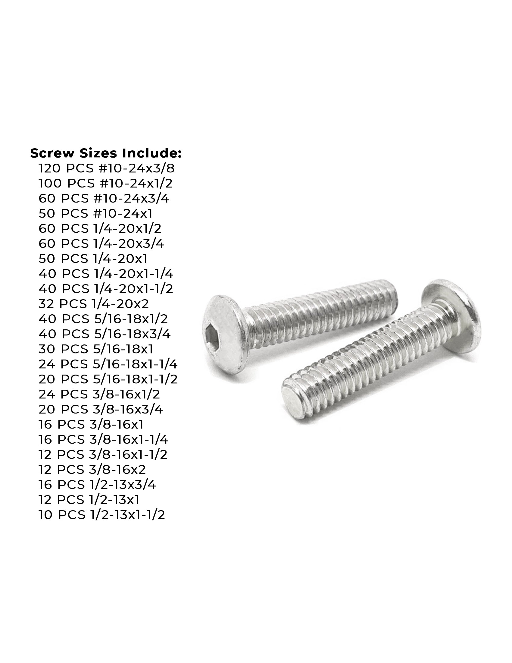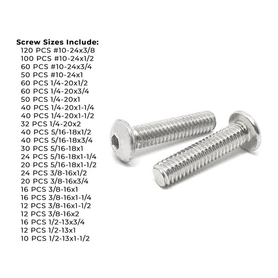Inch 18-8 Stainless Steel Allen Button Head Socket Cap Screws Bolts Assortment - 905 PCS