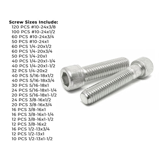 Inch 316 Stainless Steel Allen Socket Head Cap Screws Bolts Assortment - 905 PCS