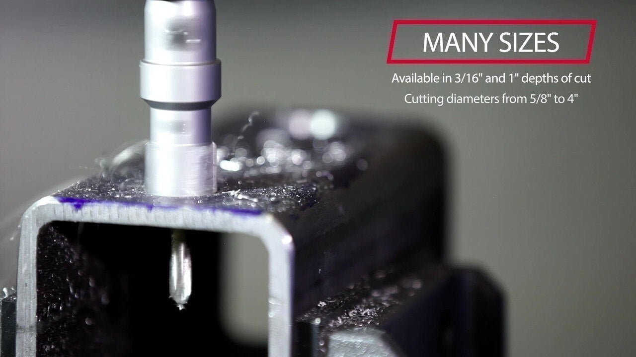 Carbide Tipped Hole Cutters offer an easy and efficient way to drill larger diameter holes without requiring large drill bits and extra large chucks. They are good for cutting stainless steel, cast iron, iron, sheet metal and copper and also works well with abrasive materials like high density resin and metal plates. They are manufactured from premium grade high speed steel with carbide tipped teeth for extra long lifespan. They have an auto ejecting slug and can cut over 300 holes in stainless steel plate. Each cutter comes with Pilot Drill and Hex Key.