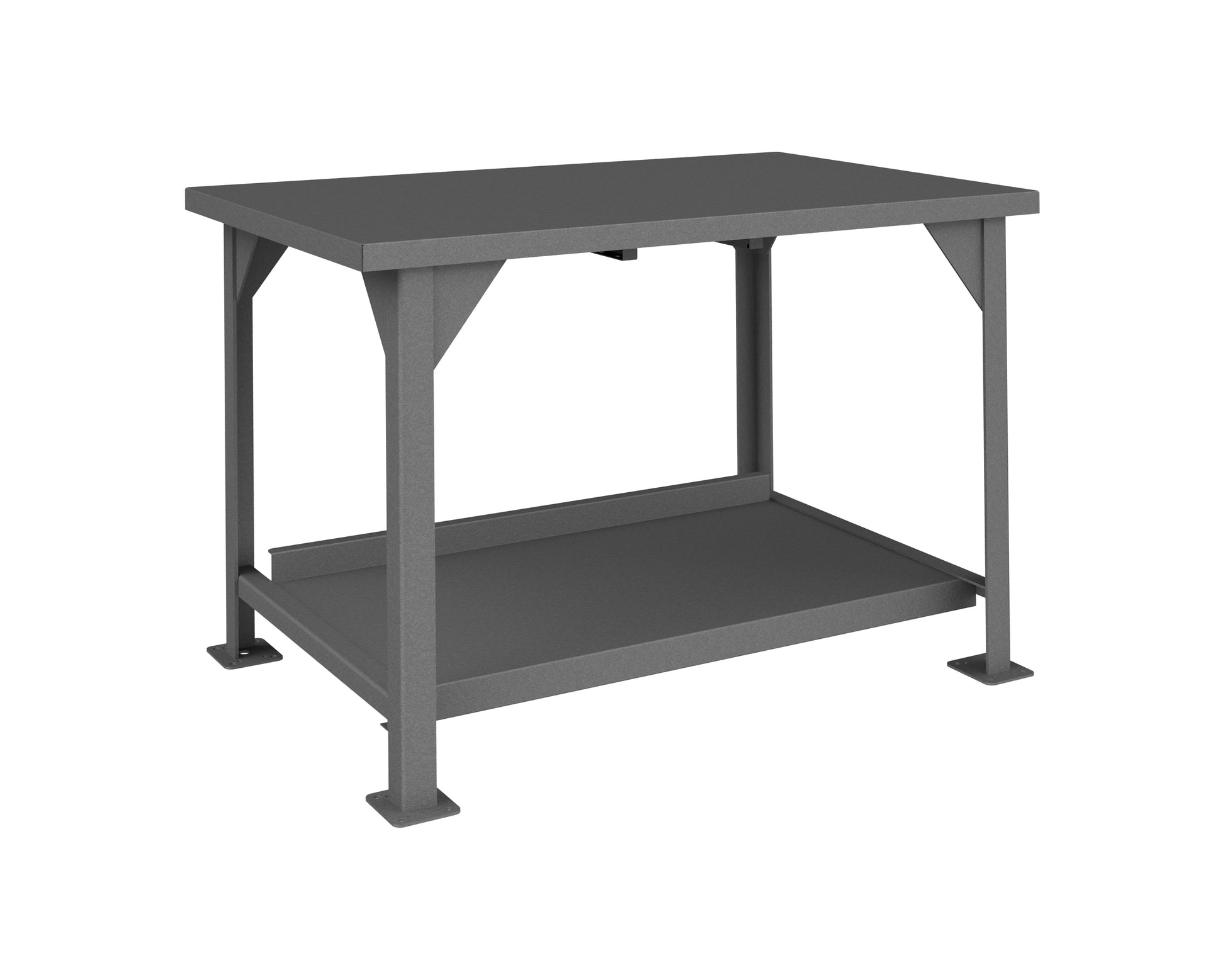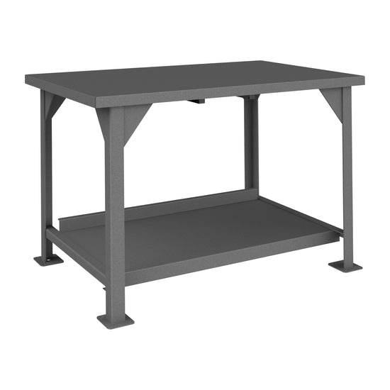 Heavy Duty Workbench, 48 x 30, 12 Gauge, Steel Top, Bottom Shelf with Back Stop, 4000 lbs. Capacity, Gray