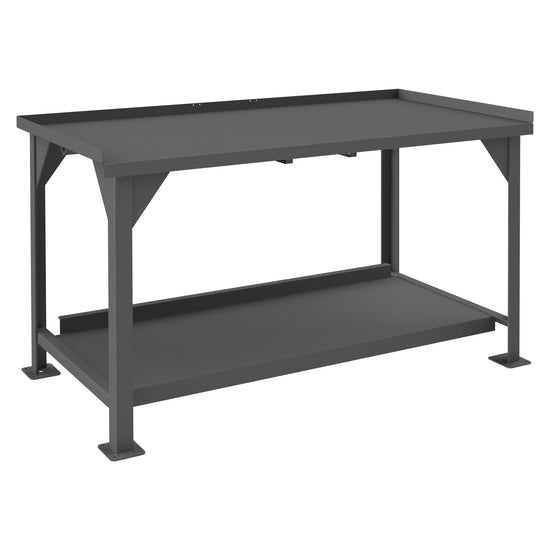Heavy Duty Workbench, 60 x 30, 12 Gauge, Steel Top, 1-1/2" Back and End Stops, Bottom Shelf with Back Stop, 4000 lbs. Capacity, Gray